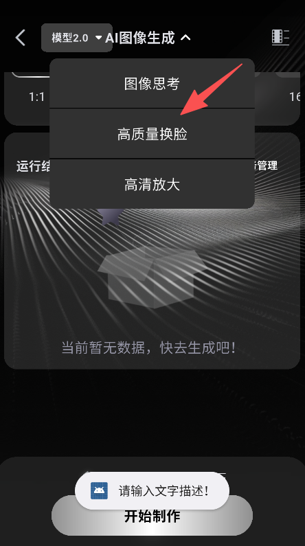 1、具备板块切换功能,进入首页点击AI图像,进入对应功能的操作页面。