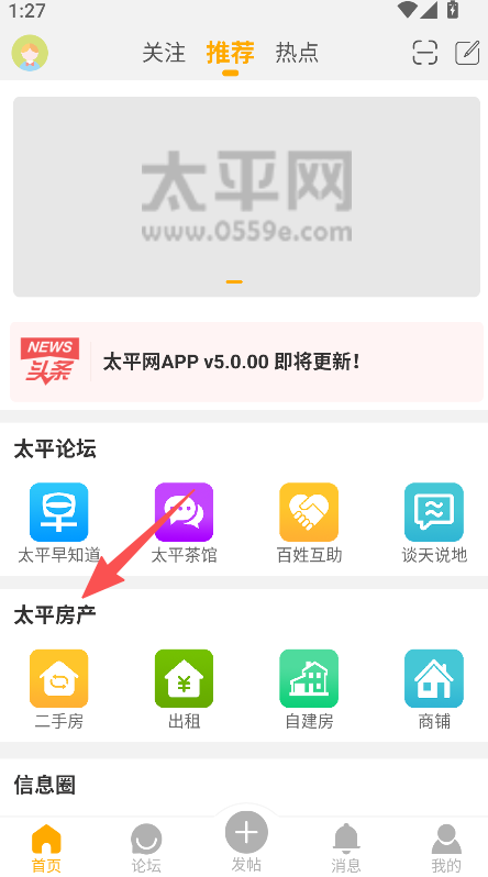 1、聚焦本地生活服务,设太平论坛太平房产等板块,覆盖房产咨询交流等需求,适配本地用户的生活事务处理。