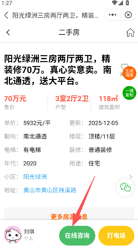 3、提供多样沟通方式,在线咨询与打电话并行,适配不同场景的房源沟通需求。