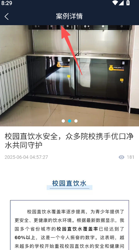 3、案例详情含相关信息,如校园直饮水覆盖等内容,展现净水服务的实际应用价值。