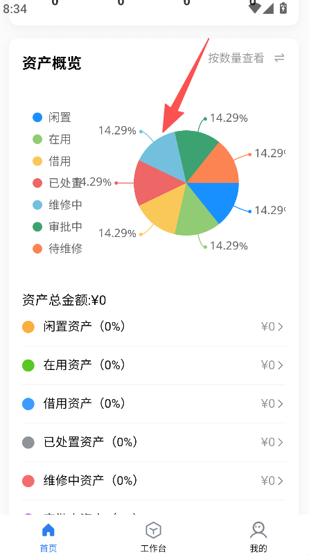 2、在首页查看资产概览的饼图,了解资产状态分布情况。