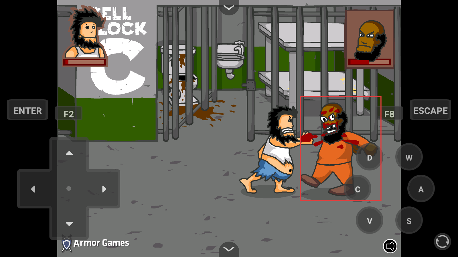 3、与对手交战时,按攻击按键对其造成伤害,击败该对手后解锁新的场景区域,继续监狱内的乱斗。