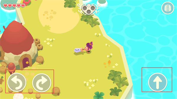 3、操控左右方向按钮移动角色,点击向上按钮前进,在场景中探索并推进冒险进度。