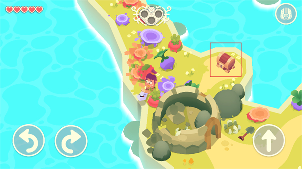 4、在场景中找到宝箱道具,靠近后互动开启宝箱,获取其中的资源奖励助力冒险。