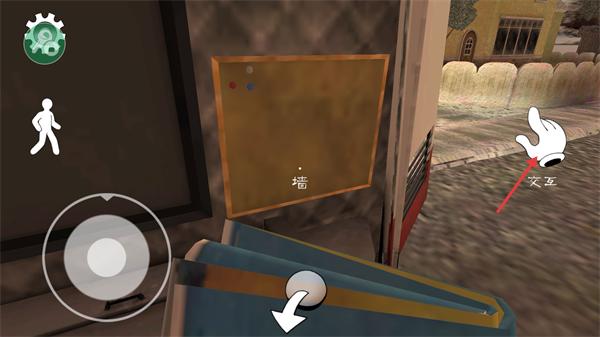 2、靠近对应墙面,点击屏幕右侧的【交互】按钮,触发与墙面的互动操作以推进流程。