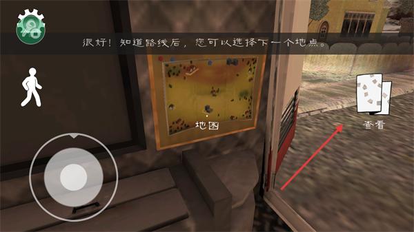 3、完成墙面交互后,点击【查看】按钮打开【地图】,获取路线信息以便选择下一个地点。