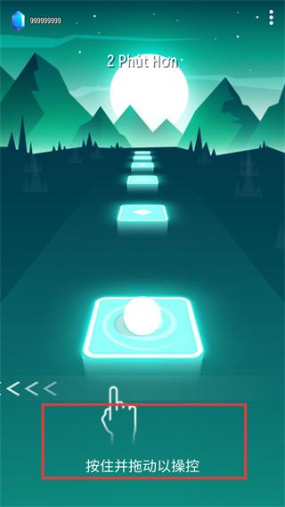 1、按照提示【按住并拖动以操控】,控制球体在发光路径上移动,界面显示【2-Phut-Hon】背景。