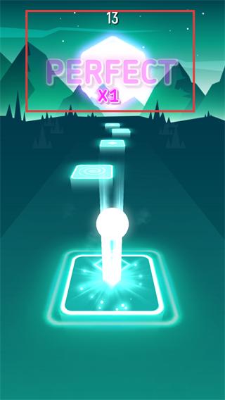 2、让球体精准落在路径方块上,触发【PERFECT-x1】判定,同时界面上方数字会累计计数。