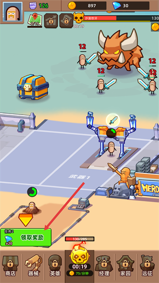 4、完成任务(如升级武器攻击力至指定等级)后,返回主界面点击【领取奖励】按钮。