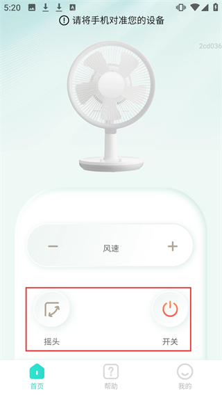 4、在风扇控制页面,可对风扇的风速、摇头、开关等功能进行操作控制。