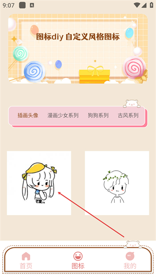 3、在【图标diy自定义风格图标】页面,选择【插画头像】分类下的样式。