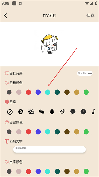4、进入【DIY图标】页面,可选择【图标颜色】等选项来自定义图标样式。