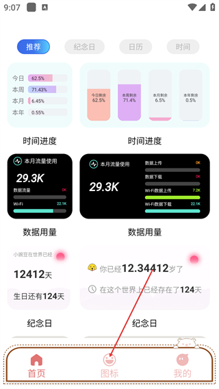 2、在界面底部点击【图标】选项,切换至对应功能页面查看相关内容。