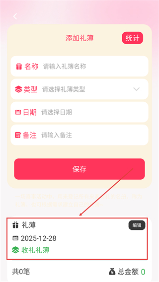 4、完成礼簿信息填写后,点击【保存】按钮即可生成对应的礼簿记录。