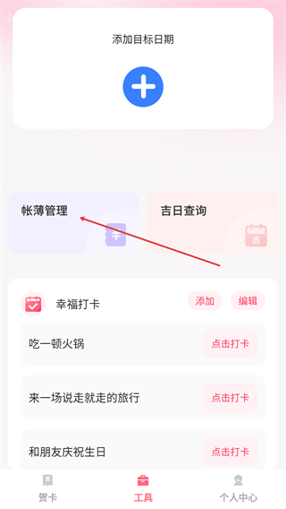 2、在工具页面中,选择【帐簿管理】选项进入相关操作界面。