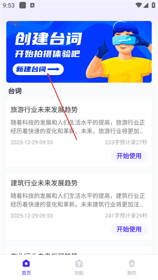 1、点击【新建台词】按钮,进入台词的编辑内容页面。