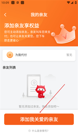 3、在我的亲友页面,点击【添加我关爱的亲友】按钮发起添加。