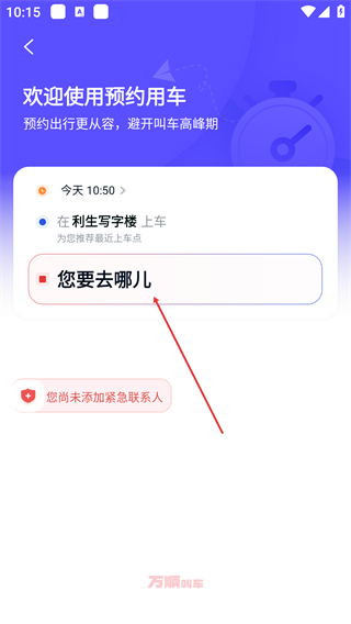 3、在预约用车页面,填写【您要去哪儿】的目的地信息。