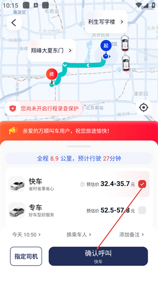 4、选择车型后,点击【确认呼叫】按钮发起预约叫车请求。