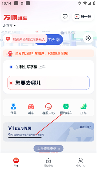 1、在主界面点击【预约叫车】选项,进入预约用车功能页面。
