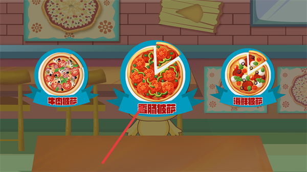 2、选择【香肠披萨】选项,进入该口味披萨对应的食材处理制作流程。