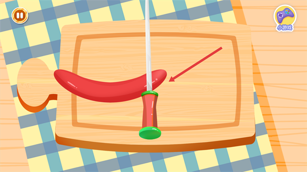 3、首先进行香肠的切割操作,完成该食材的预处理步骤。