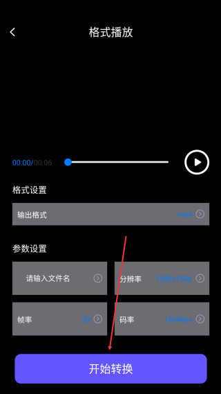 4、在格式播放页,设置参数后点击【开始转换】即可完成视频格式转换。