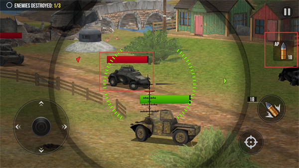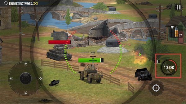 3、锁定敌方载具目标,确认瞄准圈覆盖后发射【AP】弹药,消耗弹药对目标造成伤害,推进任务进度。