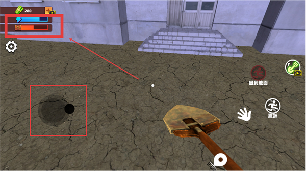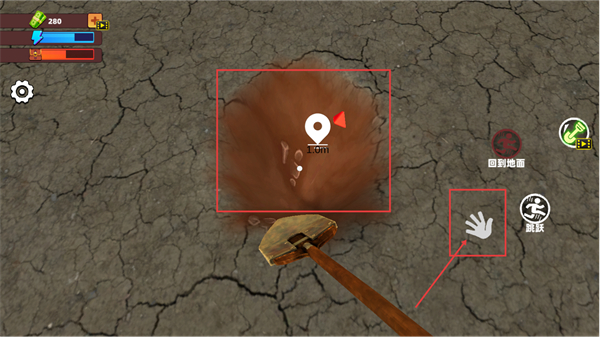 2、挖掘至1.0米时关注定位图标提示,保持节奏挖掘,适时跳跃调整位置,稳步推进深度提升进度。