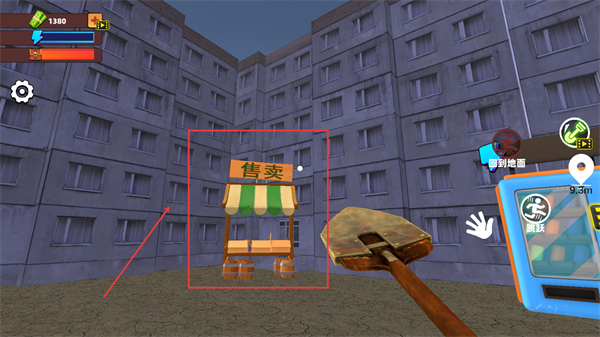 3、收集宝物后找到售卖摊位,靠近触发交互,准备出售挖到的物品,获取金币用于升级工具。