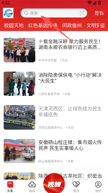 1、设多类板块含校园天地、文明实践等,展示民生动态与实践活动,适配本地资讯及实践参与的多元需求。