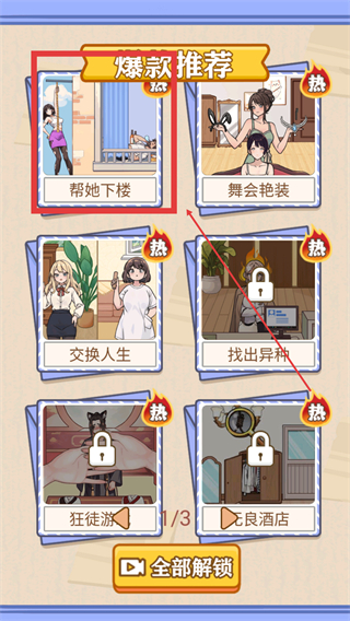 1、在游戏关卡选择页,点击【帮她下楼】关卡卡片,进入该关卡的挑战界面。