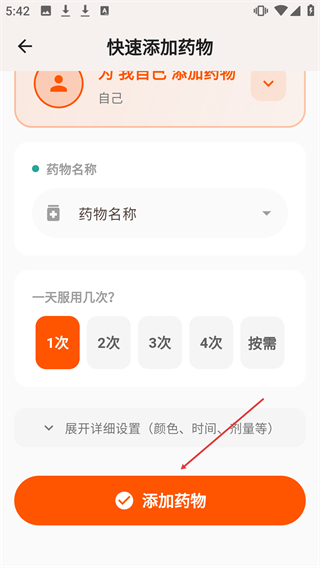 3、在【快速添加药物】页面填好信息后,点击【添加药物】完成药物添加。