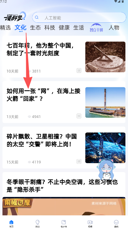 1、在主界面顶部分类标签中找到并点击“文化”进入该栏目页。