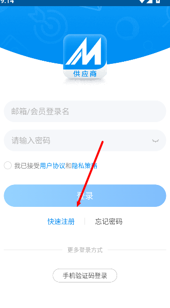 1、点击快速注册入口进入注册页面。