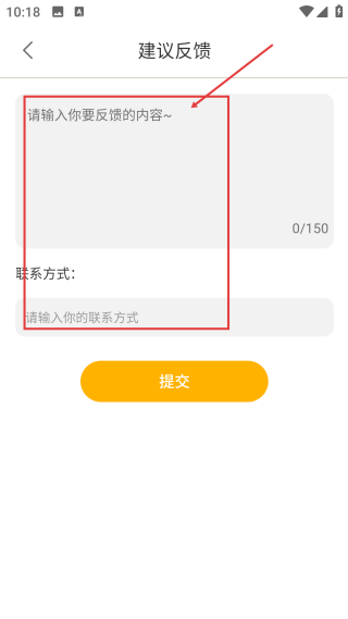 3、在建议反馈页,填写【反馈内容和选填的联系方式】,准备提交反馈信息。