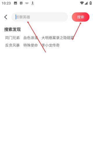 1、进入影视应用首页,点击顶部的【搜索框】,进入搜索输入的操作页面。