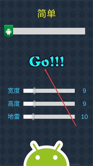 1、在设置界面,确认宽度、高度、地雷数量的配置后,点击“Go!!!”按钮,进入扫雷关卡。