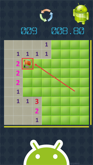 3、对疑似地雷的格子执行点击操作,通过插旗子的方式标记地雷,避免误触触发。