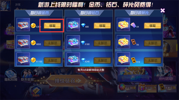 1、在福利界面点击【领取】按钮,获取初始金币资源后,开始游戏。