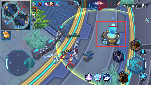 3、击杀敌方后,操控角色推倒敌方【能量装置】,获取场景资源加成,提升对局中的属性或资源获取效率。