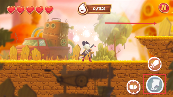 2、操控【移动按钮】控制角色在场景中移动,点击跳跃键,翻越场景障碍。