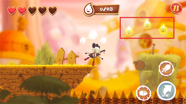 4、跳跃至对应区域收集【水滴类道具】,积累资源进度,推进关卡的冒险流程。