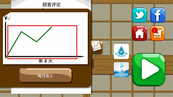 4、查看【第3天】的【每月收入】趋势图后,点击【播放按钮】进入下一轮经营,持续拓展寿司业务。
