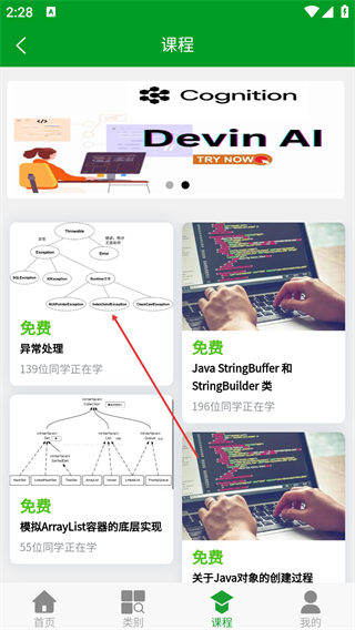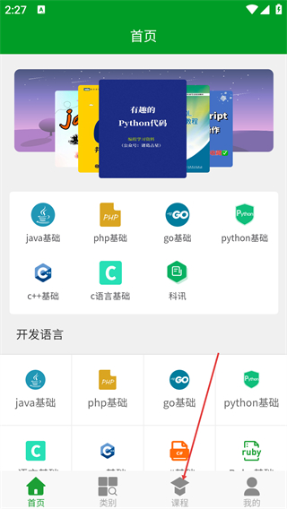 2、在首页中,点击底部【课程】选项进入课程列表页面。