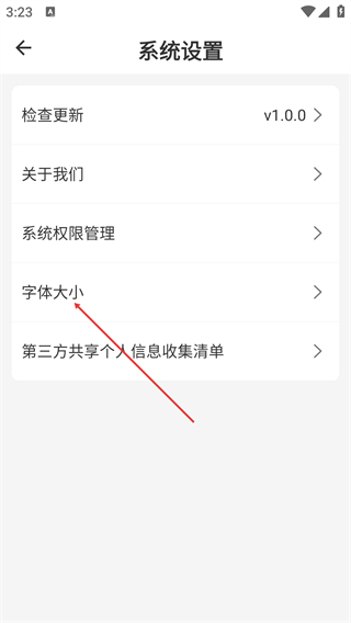 3、在系统设置页面,点击【字体大小】选项,进入字体大小调整界面。
