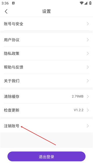 3、在设置页面,点击【注销账号】选项进入账号注销说明页。