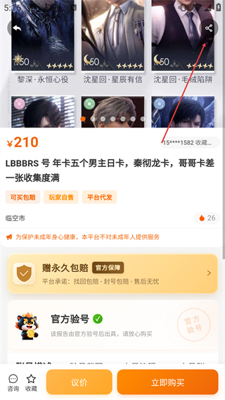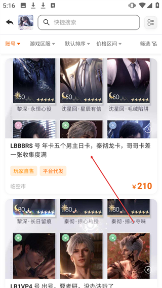 2、在该页面点击【LBBRS号年卡五个男主卡...】的账号卡片可进入其详情页。