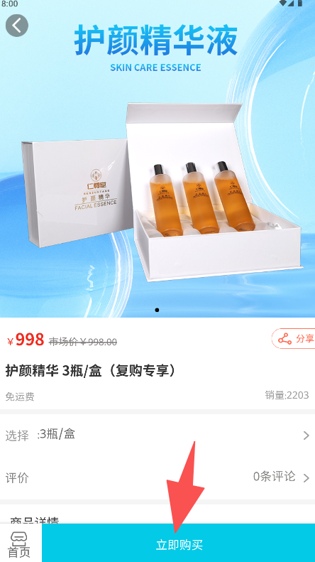 3、在商品详情页底部点击“立即购买”按钮完成下单。