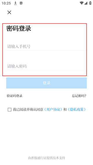 4、密码登录:点击“密码登录”切换至对应页面,输入已注册的手机号与密码;